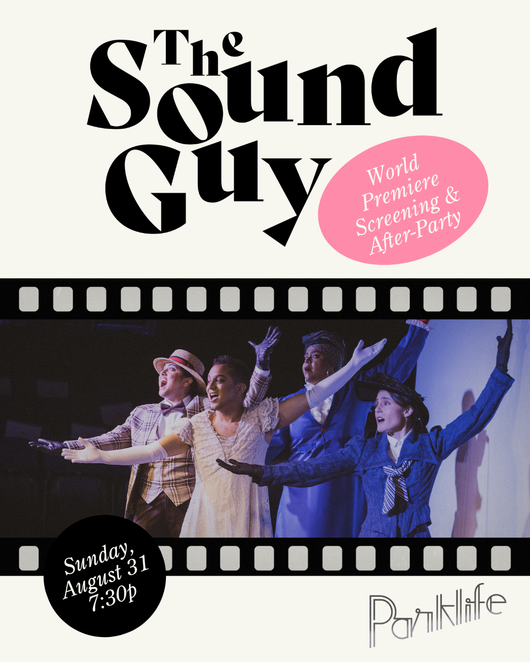After his identity is revealed, he skips town, leaving the actors to pick up the pieces. Not only do they no longer have a director, they realize they don’t even have the rights to the musical and must rewrite it to protect themselves from being sued by Sam French, himself. Thus is born The Sound Guy. A student documentarian agrees to capture the entire process: revealing the perseverance of the motley crew of theatermakers and bringing to light the underlying problems within an industry that doesn’t want to change.Starring Bonnie Milligan (Tony Award, Kimberly Akimbo), Kuhoo Verma (Plan B), Joel Perez (Tick, Tick…Boom!) and more!